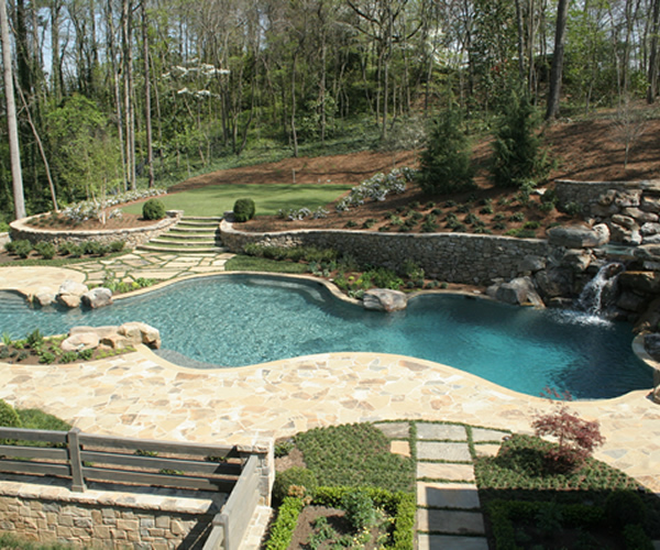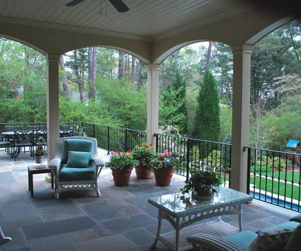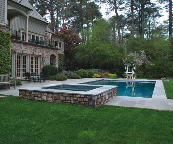 Landscape architecture, both hardscape and plantings, root the house into his surroundings. Again, great planning, and thought toward how the outdoor space will be used by the family in the future, is the key to minimizing its maintenance while maximizing its enjoyment. |